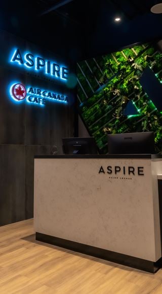 Located in the domestic departures area, the Aspire | Air Canada Café lounge is open to all guests, no matter which airline they are travelling. Whether travelling for business or leisure, there is a place to eat, drink, work or relax for everyone.