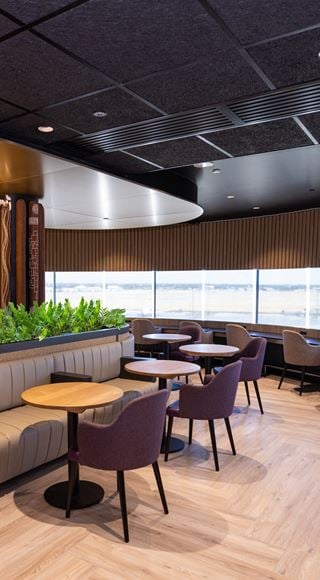 What better way to start a journey than in a relaxing and calming space gazing out to panoramic views overlooking the runway, watching the planes come and go while enjoying restaurant quality food and drinks?